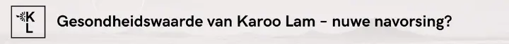 - Gunstiger vetsuurprofiel: Lammers wat op Karoo-veld grootword, het ’n laer omega-6 : omega-3 verhouding, nader aan wat vir menslike gesondheid aanbeveel word. Voerkraallammers toon hoër omega-6, wat met inflammasie geassosieer word.